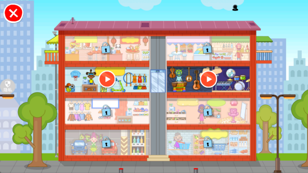 2、拥有丰富的主题场景可以解锁,点击大楼中你喜欢的房间进入玩耍吧!
