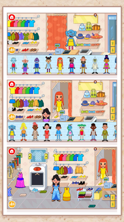 我的缤纷生活游戏在画面上采用了卡通清新的风格,拥有餐饮、运动、服装、乐器、美发、珠宝、汽车以及杂货店等八大自由的商铺空间,以活泼可爱的各类元素和放松有趣的背景音乐为玩家打造了一个完美热闹的日常生活场景!同时,其在玩法上设计的也非常的自由简单,玩家可以随意在各个商店中搭建和游玩,享受有趣的故事,所有的一切都可以全新改写,任意选择34种趣味角色并为他们搭配精致的服饰,自定义发型和妆容,没有任何规则,可以在这里体验到真实的生活乐趣,非常适合小朋友们玩!