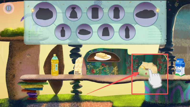 3、鼠标点红框面粉袋,从岩石平台拿烘焙材料。