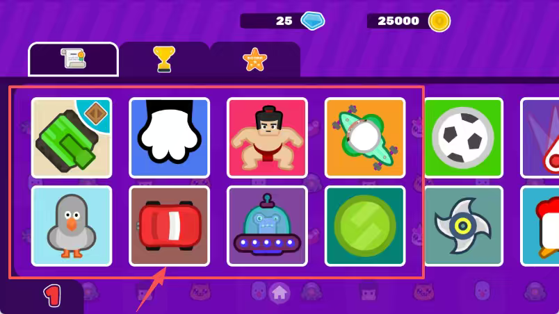 2、看上方钻石和金币数量,点下方彩色游戏图标,从众多玩法里选喜欢的游戏开始玩。
