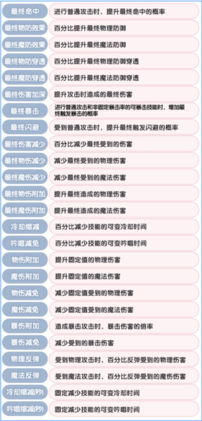 高级属性种类有很多,可以细分为高级属性、竞技高级属性、抗性属性以及克制属性。
