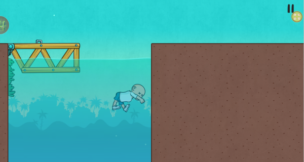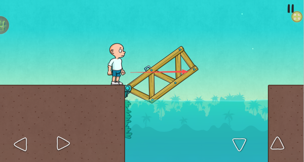 3、需要小心的进行操作,如果我们不慎掉入水中,挑战就结束了。