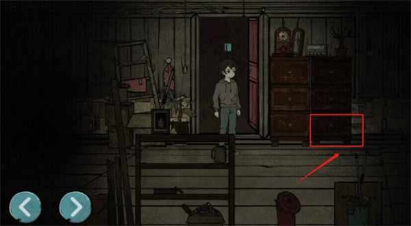 进入到2楼第2个房间,在最左边的箱子中,第1次发现木偶,并使用银针,在箱子中得到【剪刀】。