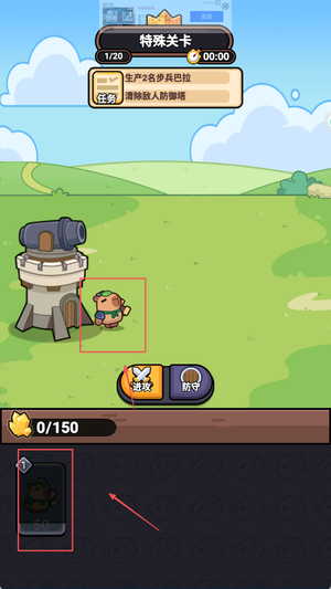 2、点击空地部署士兵,根据敌人类型选择对应克制设施,如远程射手对抗飞行单位。