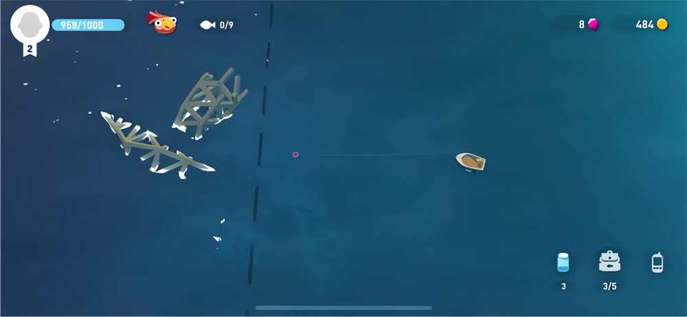 如果你发现游戏将相机移近浮标的位置,就可以判断有鱼上钩,此时红色浮标开始上下浮动。将手指靠近屏幕,但不要按压它,直到浮标完全沉入水中并发出水波纹。因此一旦游戏相机放大,请不要将视线从它身上移开。