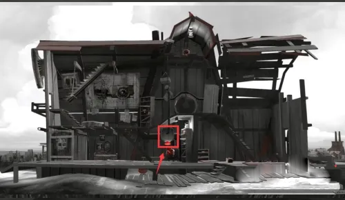 6、基本没什么难度,下车一直走,来到桥另一头,这里把那个油桶放到箭头处,按下开关ok了。