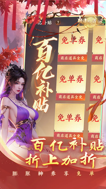 1、御剑乘风赴逍遥:进游送1w真充卡。