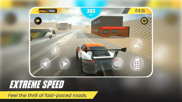 1.选择一辆赛车,左边是左右移动方向,右侧是油门和刹车按钮,操控车辆去参加比赛。