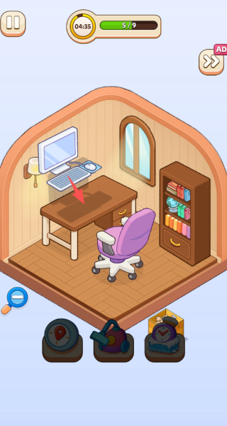 玩家需要从收纳盒中取出家具与装饰品,按照房间布局将它们摆放到合适的位置。每个房间都有独特的结构与物品,玩家需要仔细观察、合理安排,打造井然有序又充满个性的空间。在整理过程中,还可以使用吸尘器等小工具加快进度,并在倒计时结束前完成布置,体验从混乱到温馨的治愈过程。