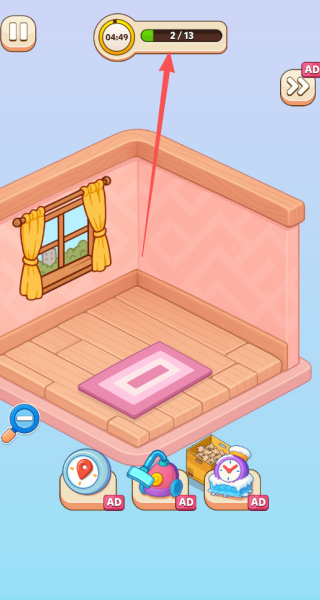 3、时刻留意顶部进度条,根据进度合理规划装修顺序,确保在时间限制内完成所有装修任务。