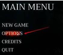 1、打开游戏菜单,移动鼠标到“OPTIONS”上面,点击鼠标左键,选择它。