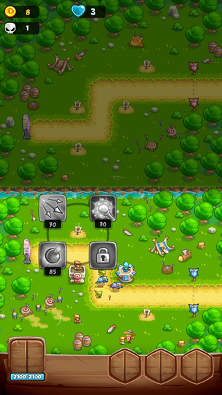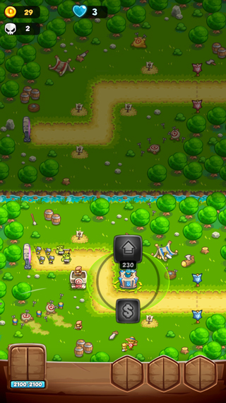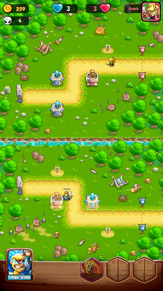3、击败敌人会掉落金币,可用来升级和建造新的防御塔;