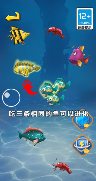 2、你要吃三条鱼才可以快速的进化,随着等级提升,体型也会变大。