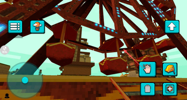2、我们可以自由的进行建设,点击加号可以打造建筑,删除键可以将方块删除的。