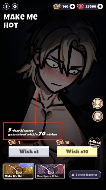 、进入游戏,和恋与深空的抽卡界面基本一致,我们可以看到这个地方,70抽是五星保底的。