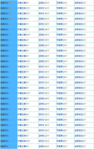 1、深渊药水:附魔胫骨5个、辉夜矿20个、烁星果20个、凋零眼泪1个