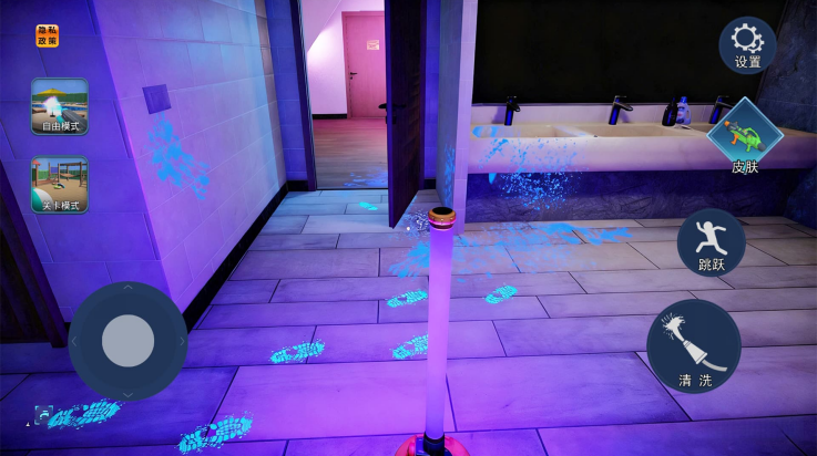 2、小编选择了自由模式,点击画面右侧的清洁按钮即可使用手中的道具来清理现场。