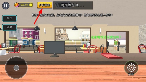 2、点击操作按钮开始营业,接待不同需求的客人,获取他们的餐食订单。