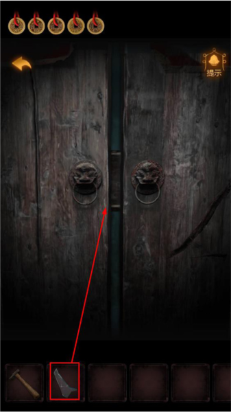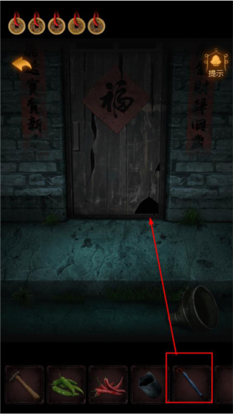 16、使用小刀拿开灶台上的年画,记住上面的红色小人图案。