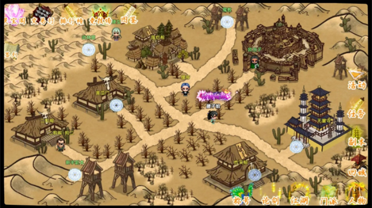 4、等有个一两千块钱就去主页江湖闯荡,会获得神兵。完了去新手副本找NPC九尾狐进去经验宝宝副本,继续刷等级,早日升到30级,能去上古战场啦。