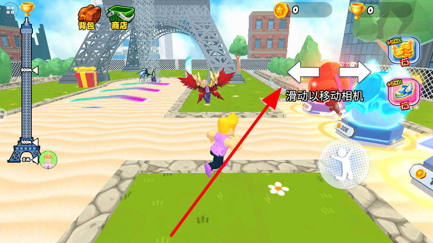 2、若想调整观察视角,按照提示滑动屏幕,移动相机视角,从不同角度观察场景,更好地了解周围环境,辅助移动等操作。