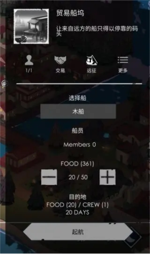 3、建好船坞和船只后,我们就可以在这里选择你想要派出贸易的船,同时派遣船员。一定要记得!带上足够的食物!