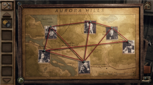 旅馆上楼开左边房间,有本打开的日记:“我在火车站旁边的木屋里藏了台手摇车,这可能是离开此镇的最后一个办法了。为保安全,我把车轮卸了,藏在自己房间的箱子里。”