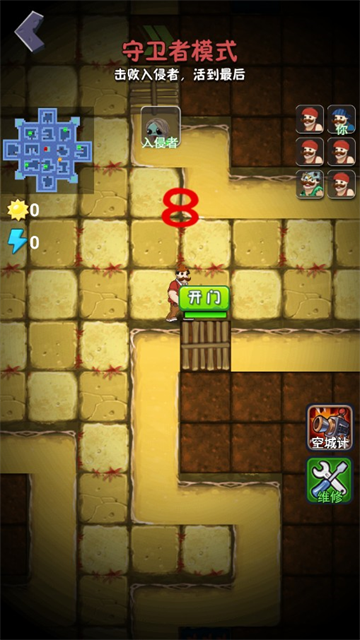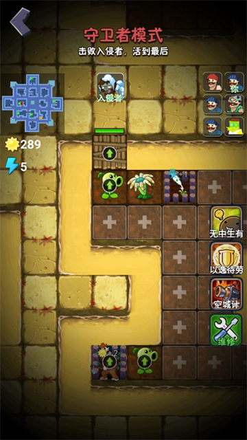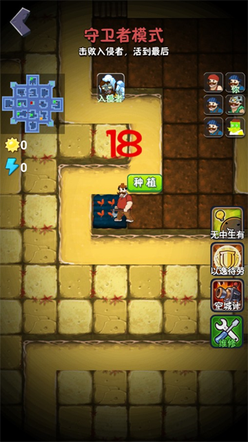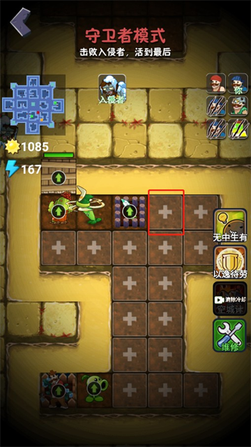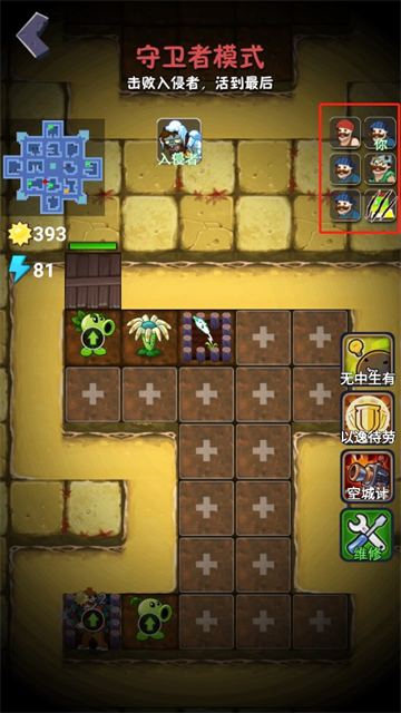 3、然后就进入到守卫者模式,玩家需要击败入侵者,也就是僵尸,然后活到最后;