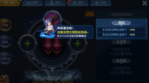 4、神装激活之后这里就会显示您的总加成,当然也是可以点击其他的功能看看哦。