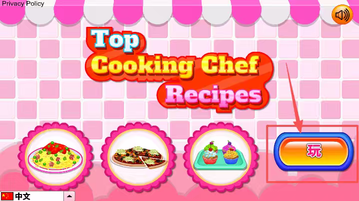 1、点红色箭头指向的玩字按钮,开始顶级烹饪主厨食谱游戏,开启美食制作体验。