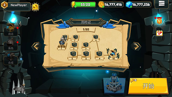 1、下载安装德雷克与陷阱,进入游戏就可以看到有1千多万钻石和金币,同时第一次打开还有奖励可以领取哦,点击一下首页中间的关卡,再点击开始就进入关卡中了。