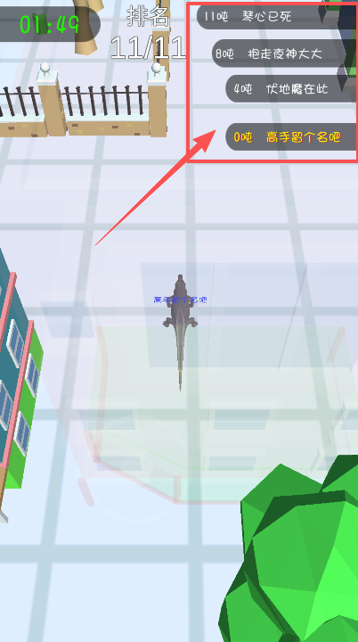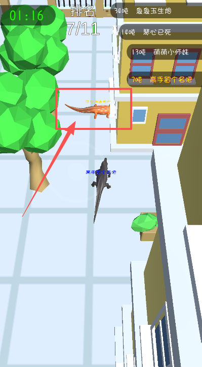 3、操控黑鳄鱼吃橙色目标,注意排名变化,1分16秒内提升名次到前七。