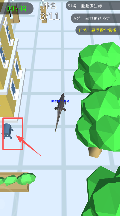 4、倒计时39秒内吃建筑,和51吨对手竞赛,快速长大超过15吨玩家。