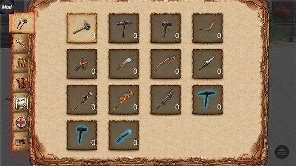 3、玩家可以进入工具栏,使用刚刚拾取的树枝来制作各种武器,用来捕猎或者保护自己。