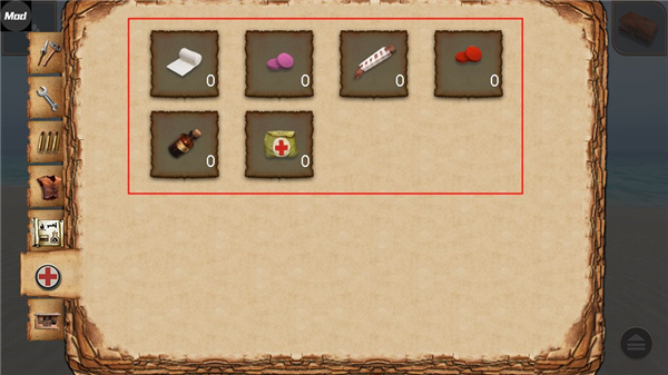 2、辐射岛功能状态栏:包含制造、生命、饥饿、背包。制造一栏囊括了我们所有需要的物品,采集工具,武器,药品,防具等等,值得一提的是,在制造栏中有直观的合成公式,和材料获取条件,算是非常贴心的功能。辐射岛的背包初始只有6格,在生存游戏中6格背包真心不够,不过不用担心,除了下方的快捷栏可以存放东西外,玩家还可以通过狩猎狼以及老虎获得皮革,制作轻型背包,最多可扩充5次背包,每次6格。或者也可以通过制作储物柜来存放物品。