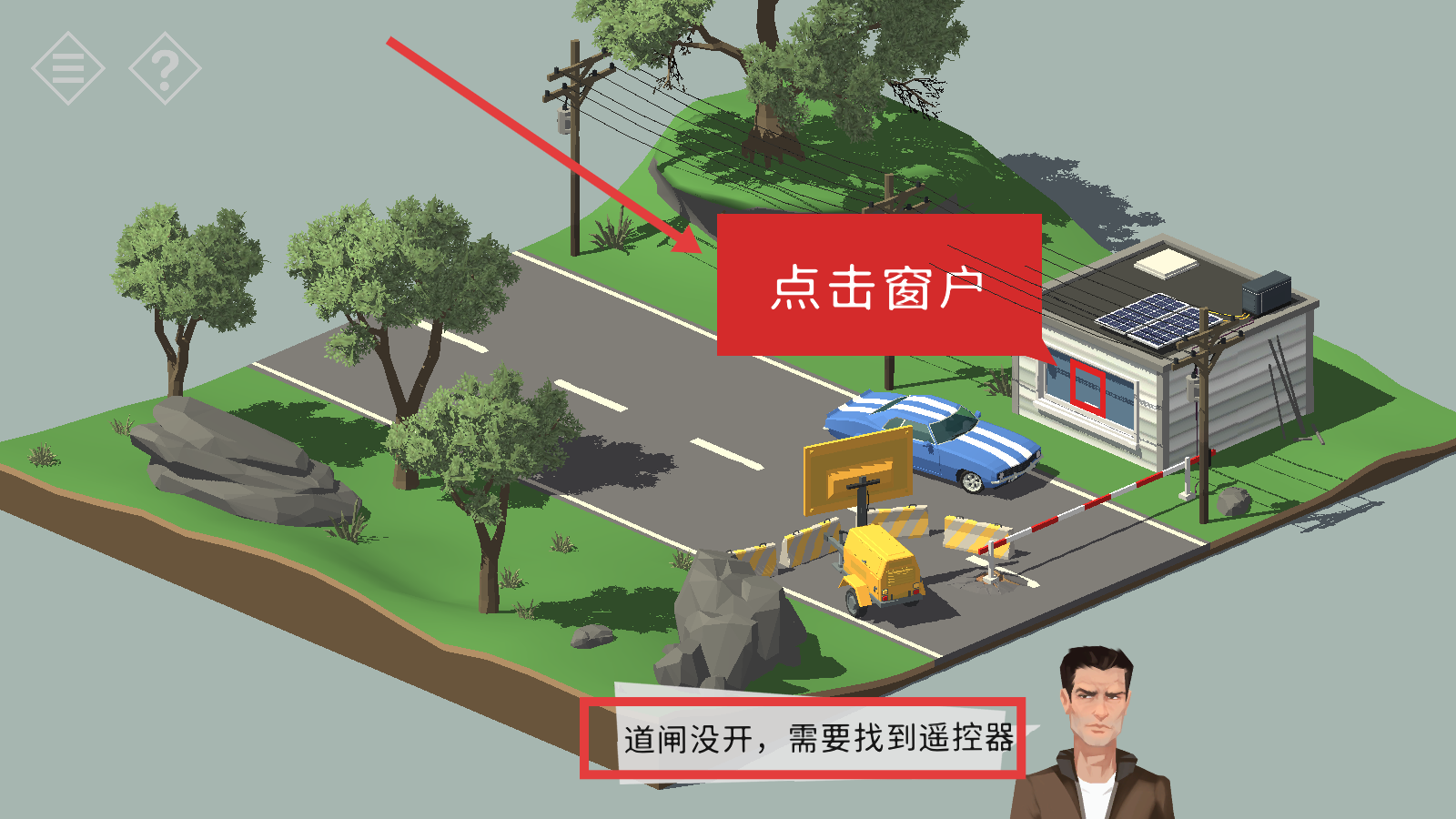 1、根据提示【点击窗户】,寻找开启道闸所需的遥控器。