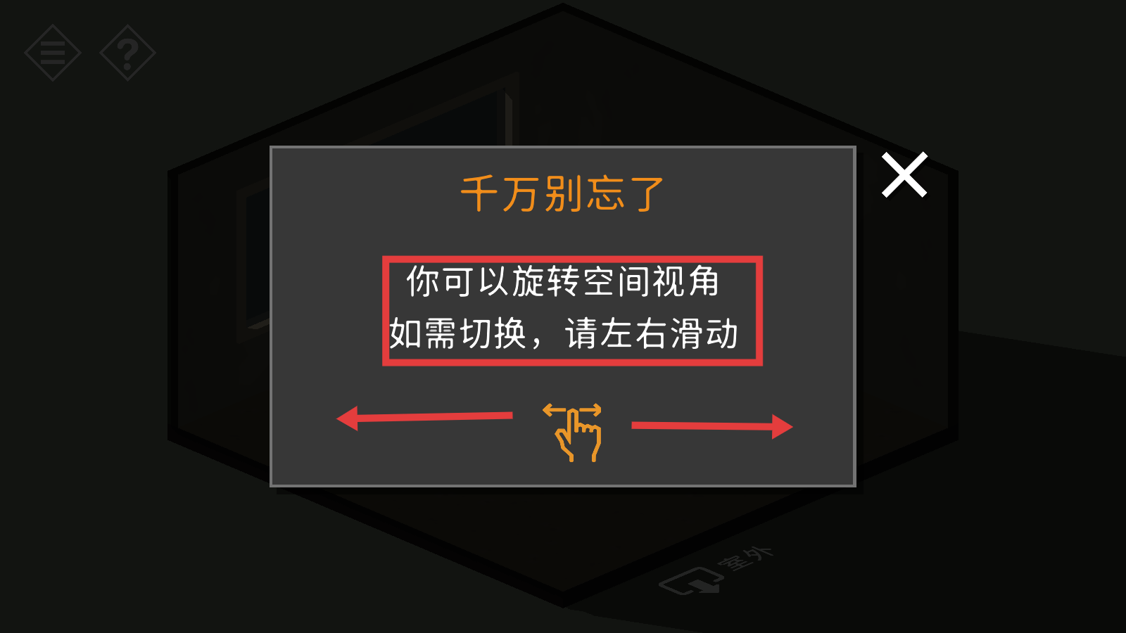 3、记住【你可以旋转空间视角,如需切换,请左右滑动】,通过左右滑动切换视角以便更好地探索场景。