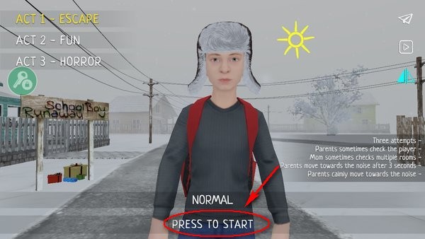 打开逃离家暴游戏后,点击“PRESS TO START”,开始游戏;