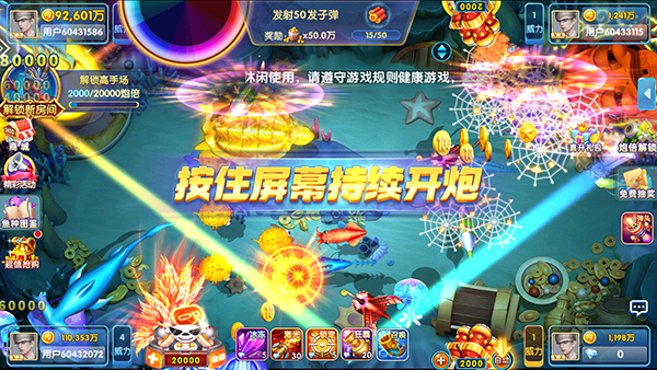 4、游戏玩法多样,千倍奖励,万炮倍率!每个场次玩法不重样;