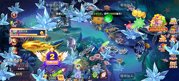 4、道具使用:游戏内提供多种道具,如冰冻、锁定、加速炮弹等,合理利用这些道具可以帮助玩家更有效地捕鱼。例如,在关键时刻使用狂暴技能、加速技能等,可以提高捕鱼效率。