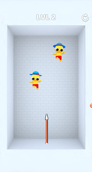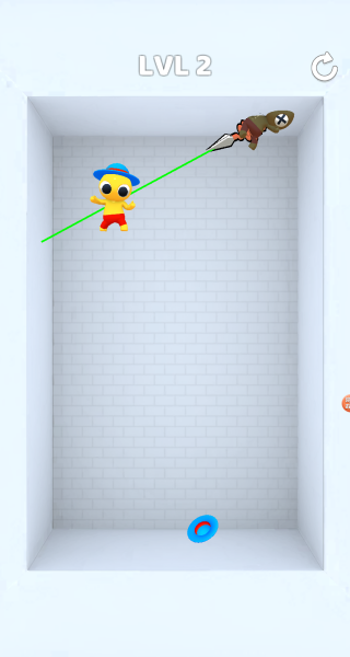 核心玩法极简:点击拖拽即可蓄力瞄准,松开手指发射长矛。关键在于利用 \"长矛黏墙\" 机制,通过反弹、绕障规划弹道,精准击破躲在障碍后的敌人。