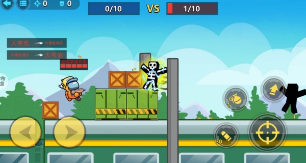 3、操控着太空角色在关卡中与敌人作战,灵活切换大招和按钮,干掉敌人。