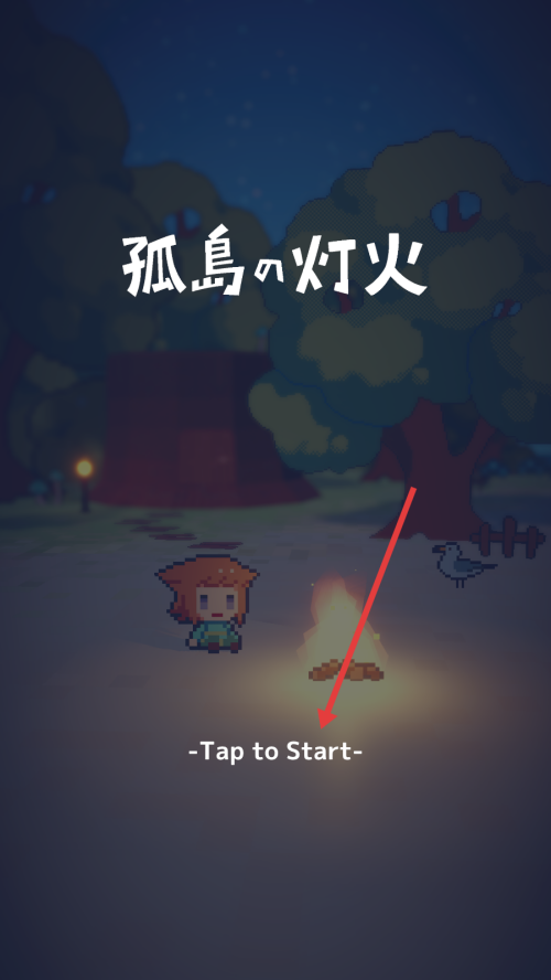 1、游戏初始界面,点击【-TaptoStart-】区域,进入《孤島の灯火》游戏,开启冒之旅。