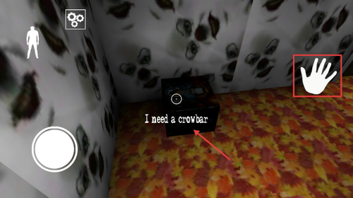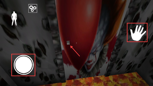 2、使用左侧圆形虚拟按键控制角色移动,在可互动区域点击右侧手掌图标进行调查或拾取物品。