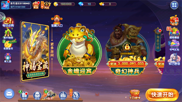 1、首先打开游戏,点击快速开始;