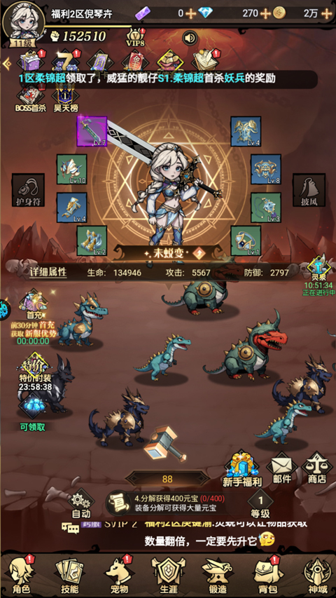 5、另外,游戏内还有宠物系统,玩家可通过养成来提升总战力。