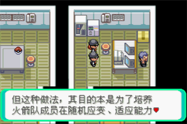 1、不过换成了火箭队的人物形象,而后输入名字,点击确定,开始游戏。开局就在火箭队基地,干部训话结束就可以拿精灵了,
