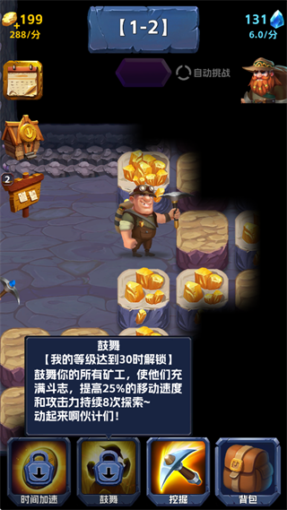 你的所有矿工,使他们充满斗志,提高25%的移动速度和攻击力持续8次探索~动起来啊伙计们!