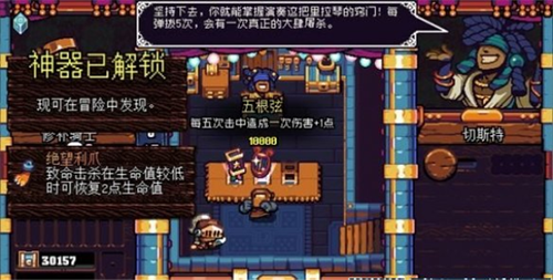 2、冒险模式是游戏的一般模式,相当于战役剧情,探索关卡,解锁成就与神器,解开地牢谜团。