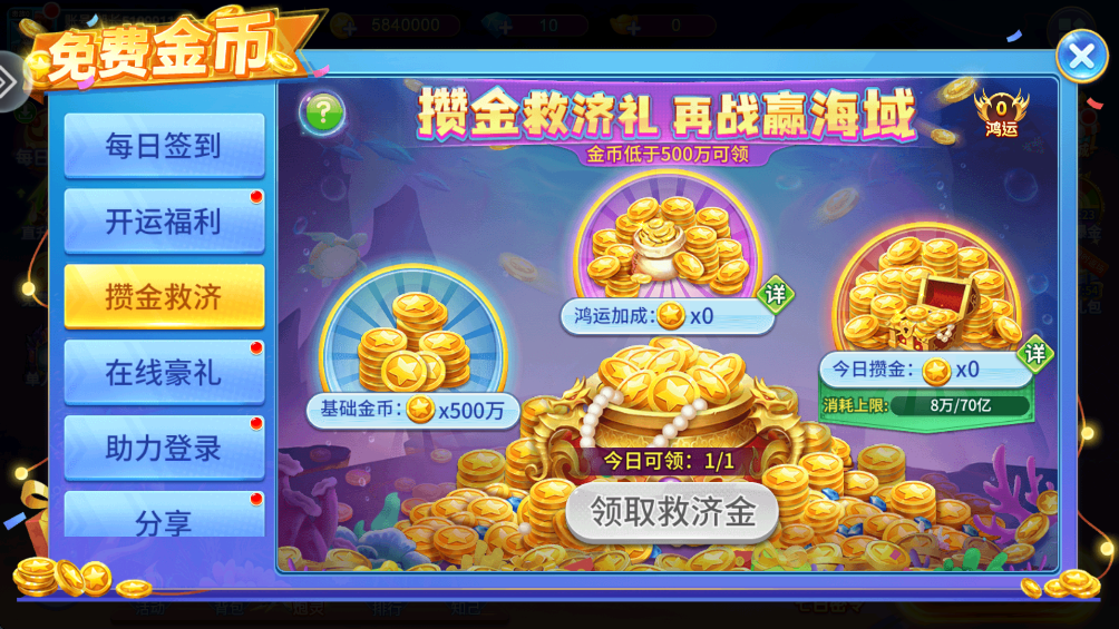 5、参与金币获得玩法进行捕鱼可以大量的金币。